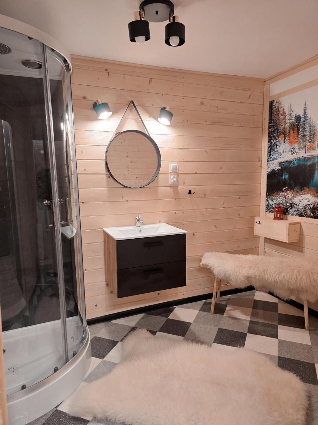 Apartament. The hot tub is the standout feature of this apartment. This apartment features 1 bedroom, a kitchenette and 1 bathroom with a bath and a shower. Guests will find a stovetop, a refrigerator, kitchenware and an electric kettle in the kitchenette. The apartment also comes with a barbecue. This apartment has a wardrobe, a sofa, a flat-screen TV and an outdoor dining area. The unit has 2 beds. Apartament - 3 osobowy. Powierzchnia pokoju ok.: 22 mkw. ;