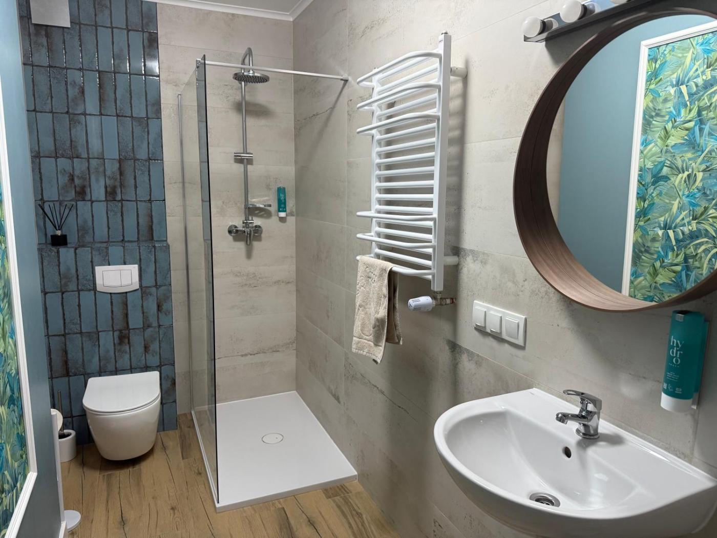 Pokój Trzyosobowy z prywatną łazienką. This triple room provides a sauna. The triple room features a private bathroom, a private entrance, a tea and coffee maker, as well as a seating area with a flat-screen TV. This triple room has a wardrobe, heating and a TV. Pokój Trzyosobowy - 3 osobowy. Powierzchnia pokoju ok.: 18 mkw.
