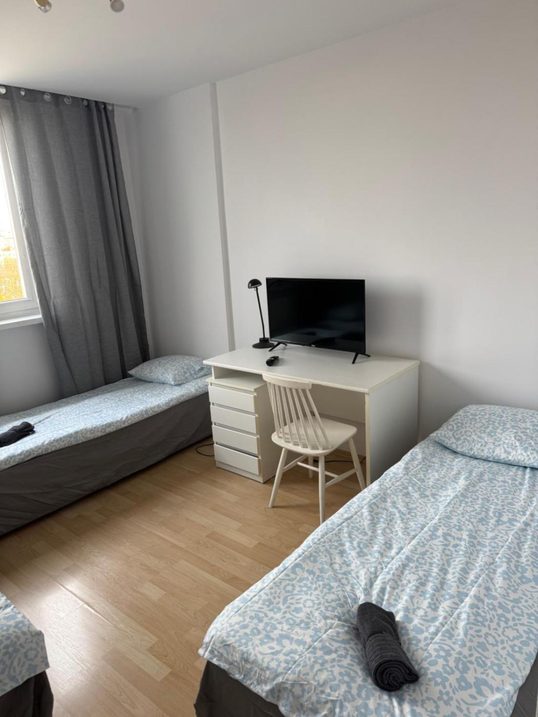Pokój Czteroosobowy. The quadruple room features a washing machine, a dining area, as well as a shared bathroom boasting a bath and a hairdryer. The quadruple rooms kitchen, which has a stovetop and an oven, is available for cooking and storing food. This quadruple room offers heating, a flat-screen TV and city views. The unit has 3 beds. Pokój Czteroosobowy - 3 osobowy. Powierzchnia pokoju ok.: 15 mkw. ;