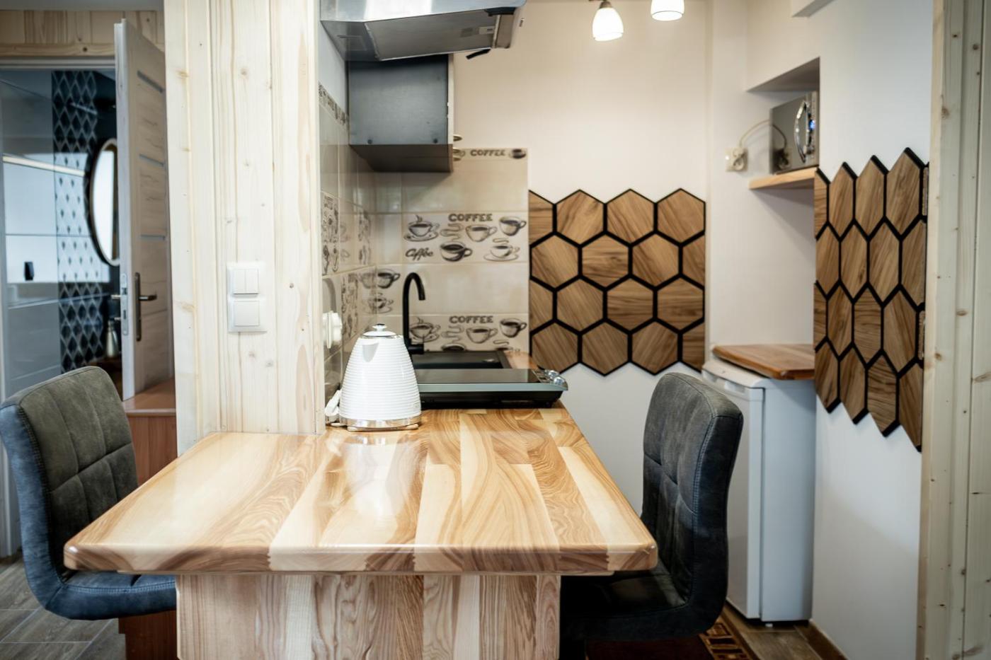 Studio typu Standard. In the fully equipped kitchenette, guests will find a stovetop, a refrigerator, kitchenware and an oven. This studio has a private bathroom, a washing machine, a private entrance as well as an outdoor dining area. The unit has 1 bed. Studio - 2 osobowy. Powierzchnia pokoju ok.: 21 mkw. ;
